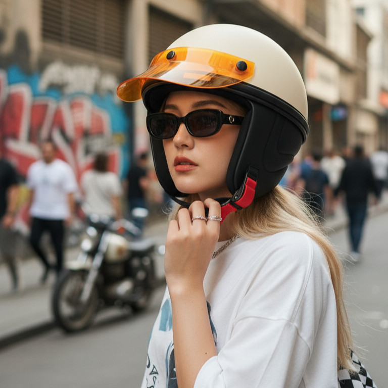 Helm Chips Retro Vintage Dewasa Klasik Cewe Cowo Vespa Club Motor Cewek Kalcer