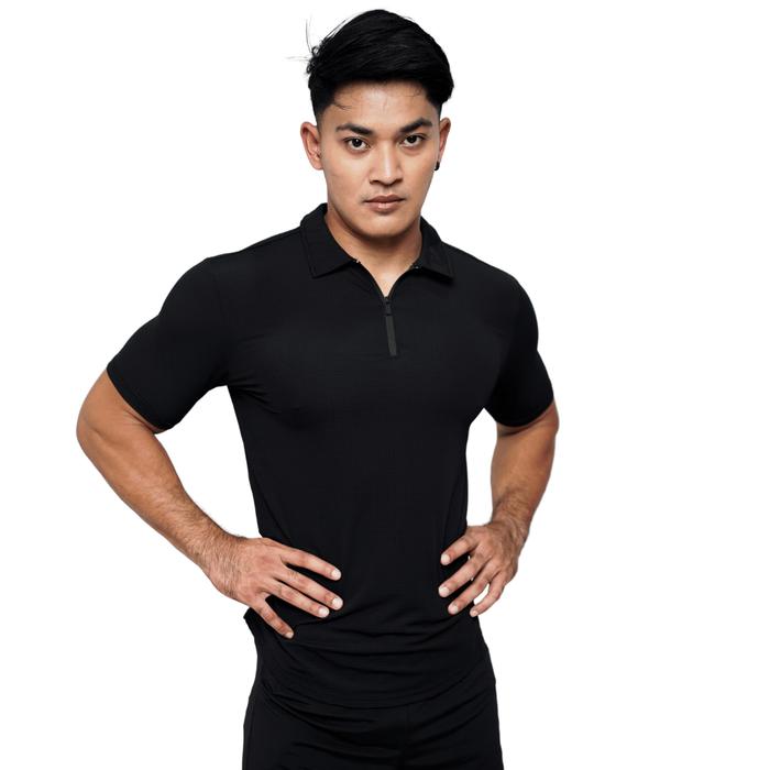 Whittaker Luxe Polo #2109 / Polo Zipper / Baju Olahraga / Polo Olahraga - Hitam, S