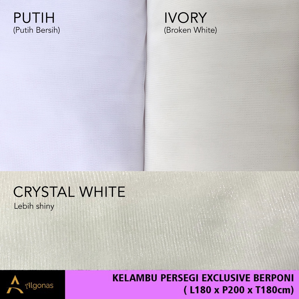 Kelambu Tidur Persegi Exclusive Dengan Poni Cantik (180x200x180) Algonas