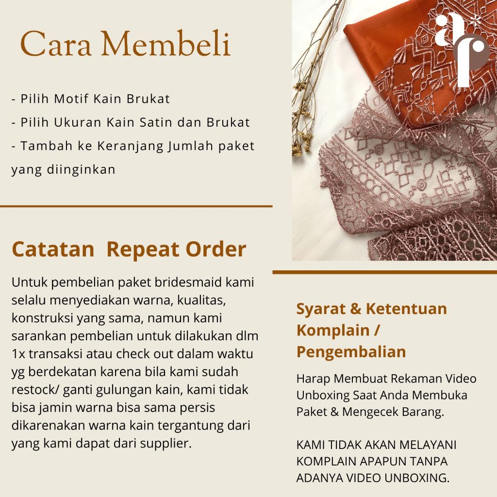 Paket Kain BRIDESMAID PREMIUM Lamaran Seragaman Keluarga Wisuda Lengkap Satin Kebaya Brokat Warna NEW Terracotta