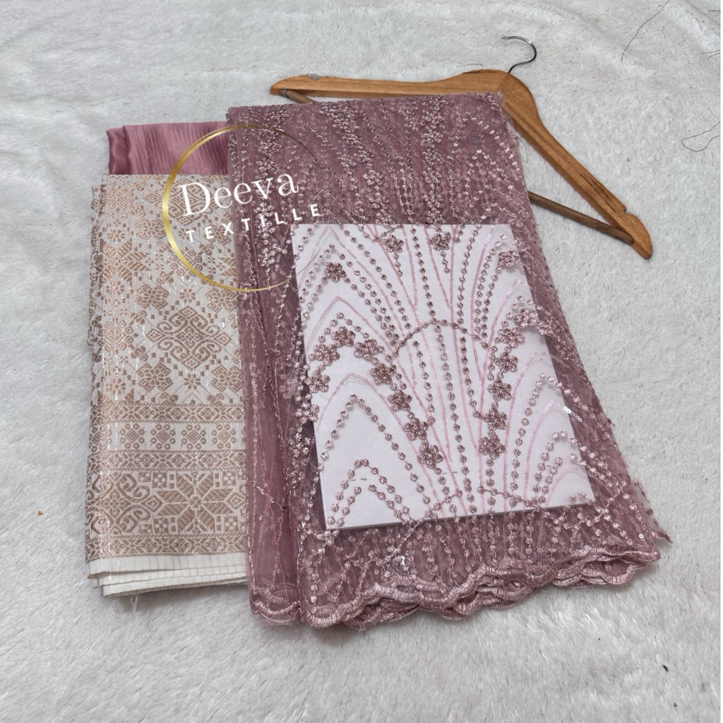 SetPaket Kain Bridesmaid Tile Payet Sequin, SatinFuring & Songket Semi palembang