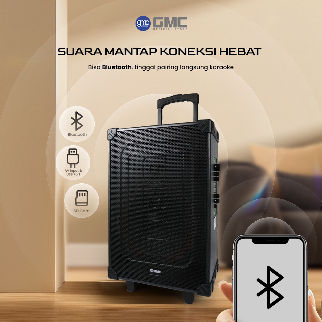 GMC Speaker 883M – Bluetooth Karaoke Speaker 12" – 130W, USB, SD, AV In, FM Radio, Karaoke Jack