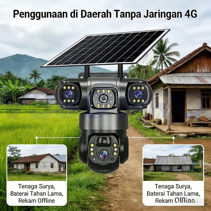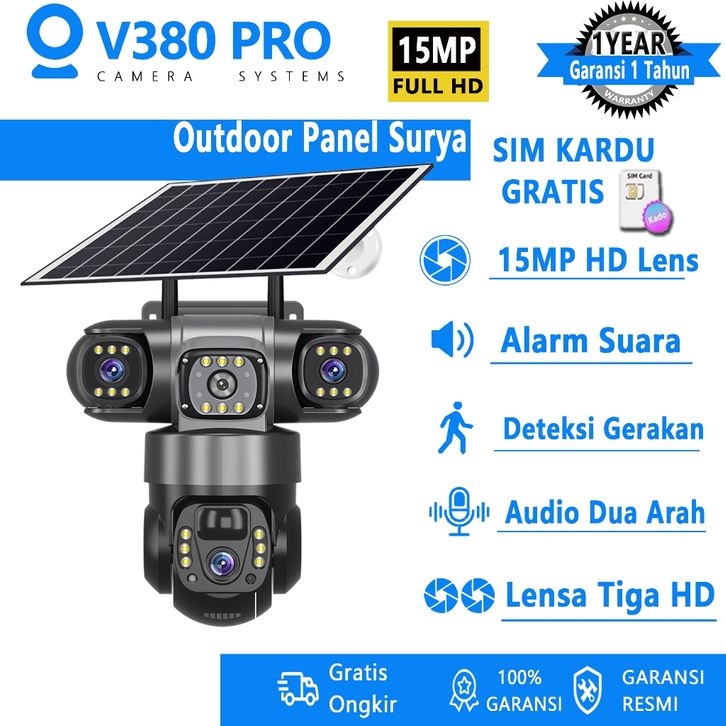 CCTV V380 Pro Tenaga Surya 4G SIM Tanpa WiFi Tahan Air IP66 Daya Tahan 1 Bulan Night Vision Penuh Warna Kamera Keamanan