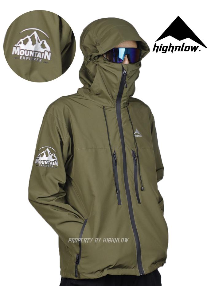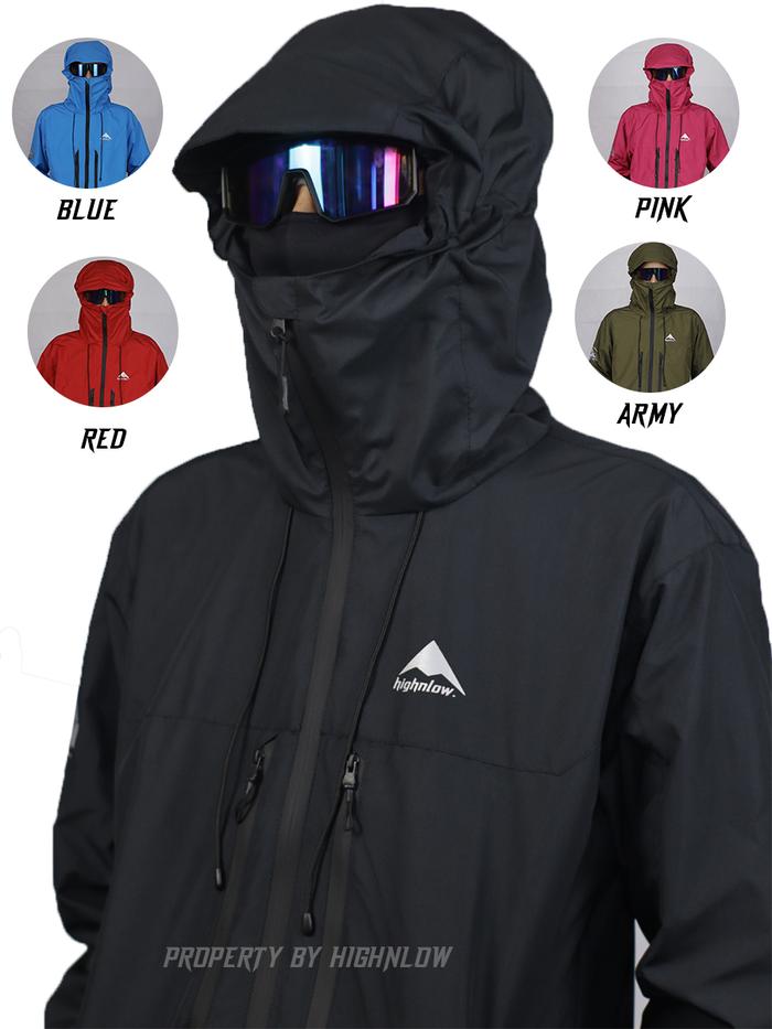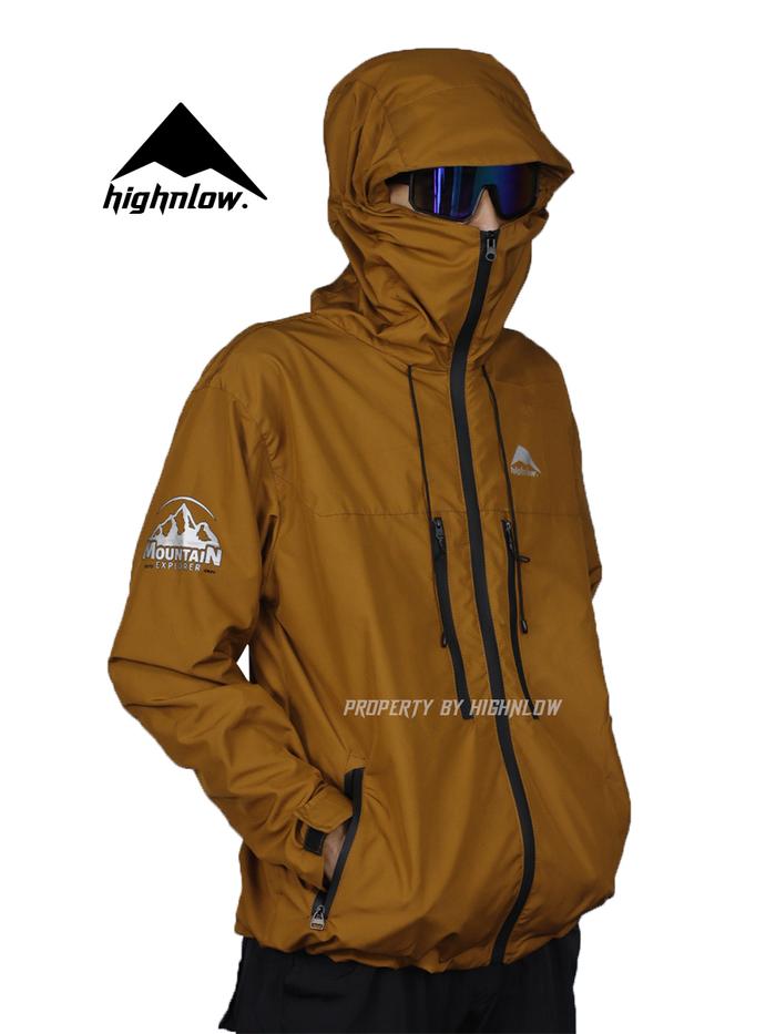 HIGHNLOW JAKET GORPCORE MOUNTAIN EXPLORER SERIES WATERPROOF JAKET PRIA WANITA HIKING GUNUNG WINDBREAKER OUTDOOR SPORT BAHAN TASLAN RINJANI - HITAM, M