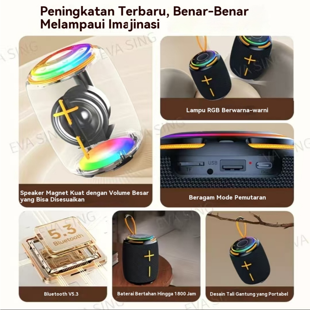 KIMISO HM-837 Speaker Bluetooth V5.3 LED RGB Speaker Luar Dalam Ruangan uara Bass Stereo Tahan Air