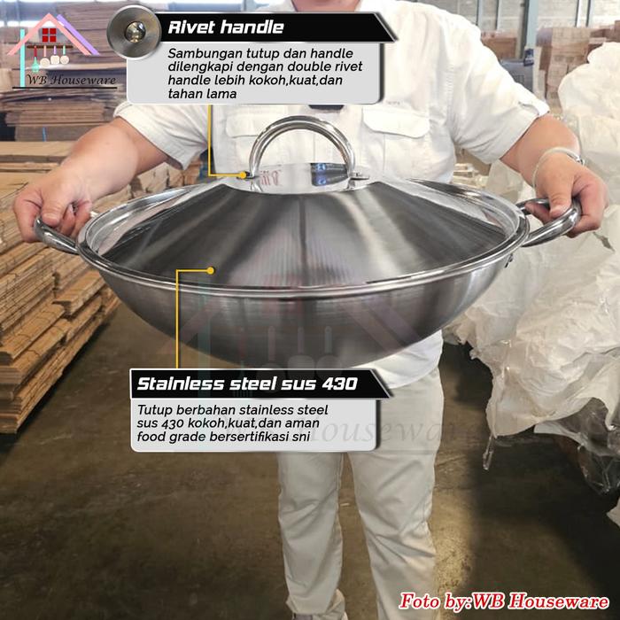 WB HOUSEWARE X KOKO SUPRA SUPRA PENGGORENG WAJAN KUALI JUMBO 52CM STAINLESS STEEL SUS430 TEBAL 1MM / WOK MASAK BESAR AWET TAHAN LAMA - WAJAN 52CM