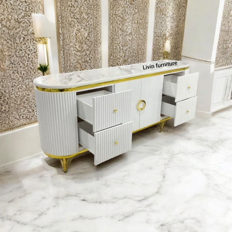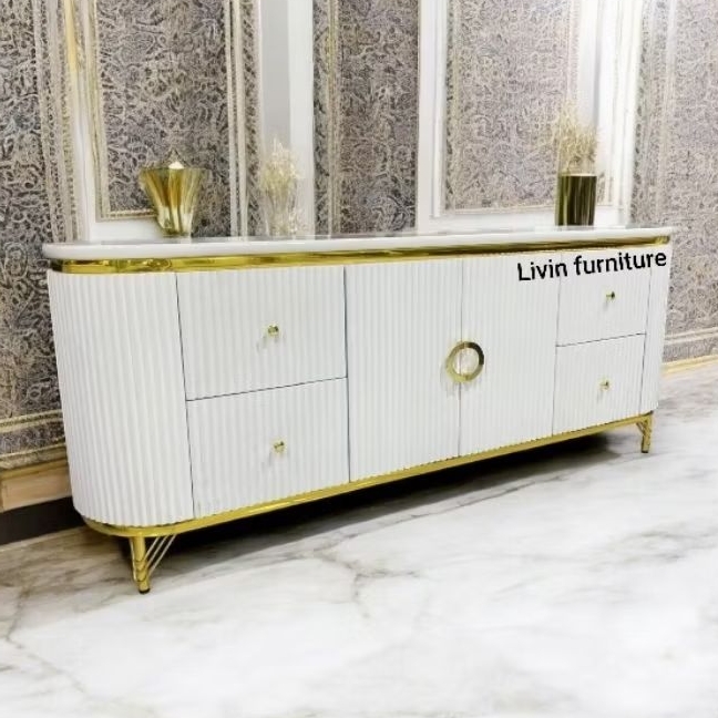 meja tv minimalis modern Bufet TV Oval Minimalis Putih Gold 200cm terlaris