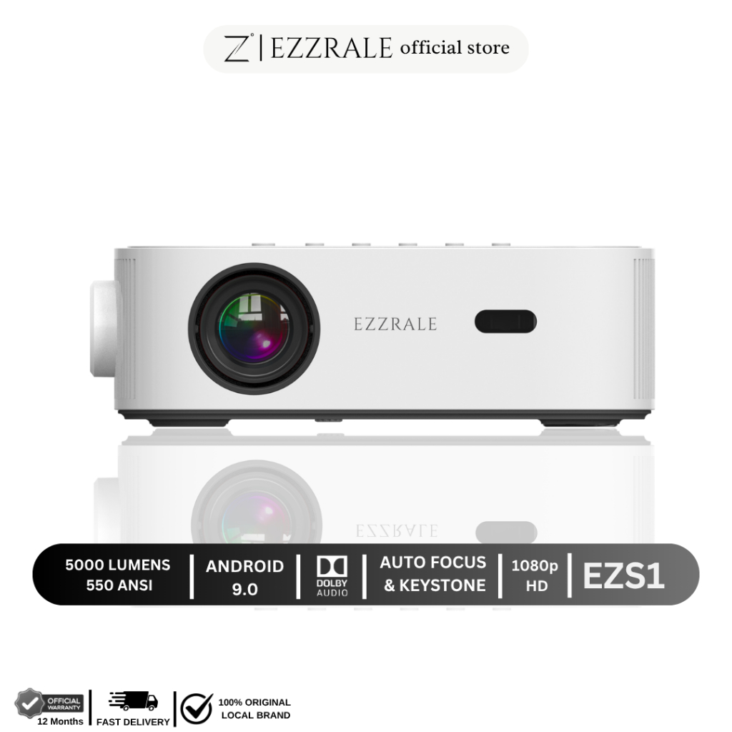 EZZRALE EZS1 550 ANSI FHD 1080p Smart Android Projector 9.0 , Digital Focus, Dolby Sound Effect