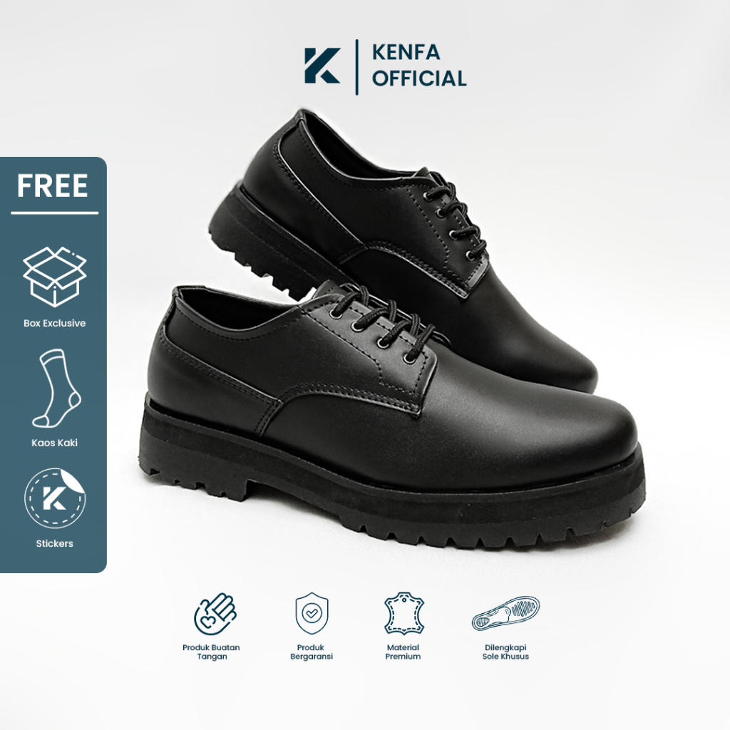 Sepatu Kerja Pria Kenfa Sefron Black Sepatu Formal Pria Wanita Casual Kerja Kantor Semi Kulit Simple Basic Hitam