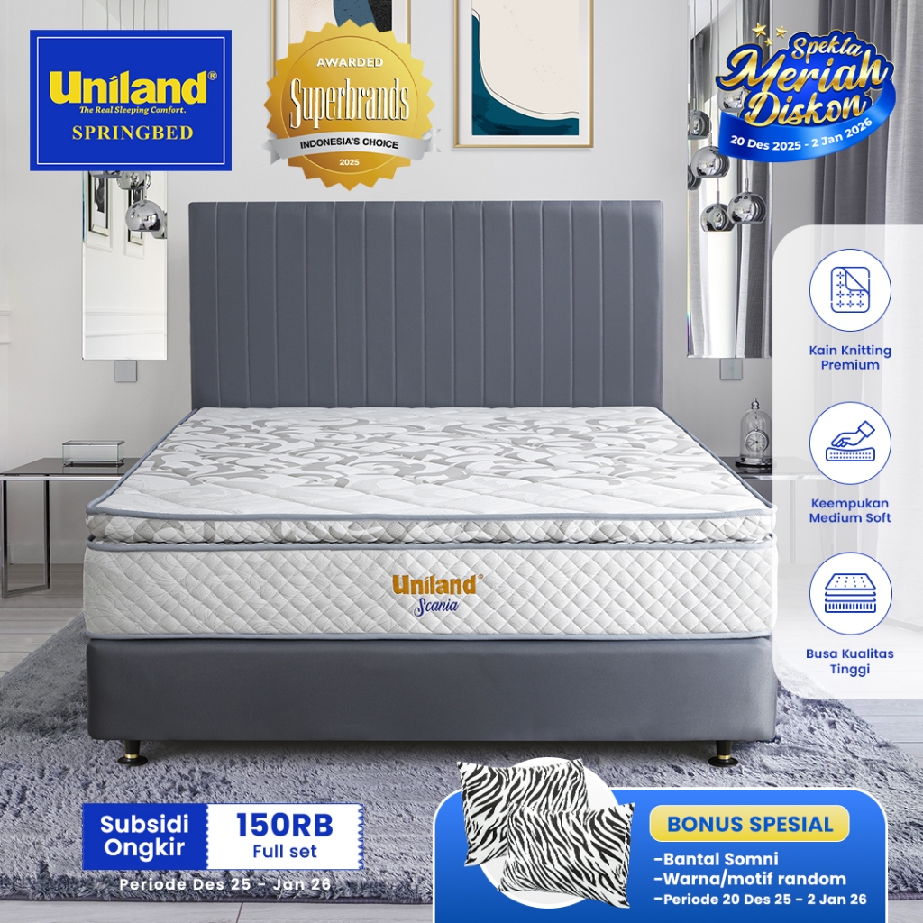 Uniland Springbed Scania Pillowtop - Full Set Kasur Spring Bed