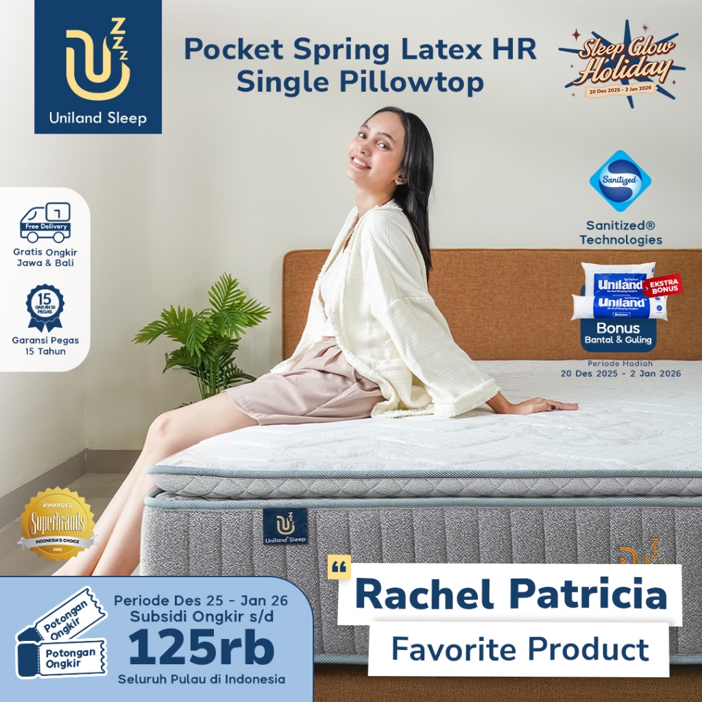 Uniland Sleep Kasur Pocket Spring Latex HR Single Pillowtop 30cm