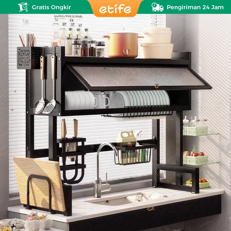 [Mall] Rak Piring Wastafel Dapur Stainless Steel Multi-fungsi Dengan Penutup Rak Piring Minimalis Modern