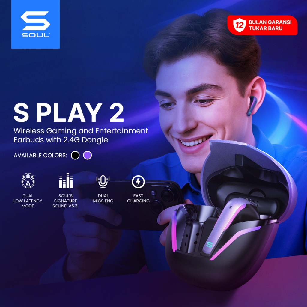 TWS Gaming Dual Mode Bluetooth SOUL S Play 2 2.4Ghz Dongle Low Latency True Wireless Earbuds