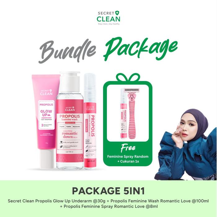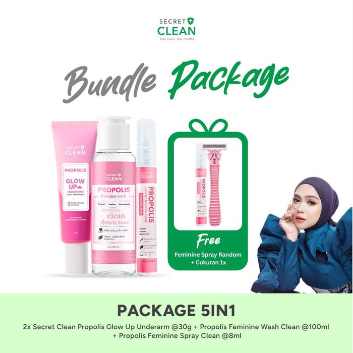 [RIA RICIS SPECIAL EVENT 5IN1] SECRET CLEAN PROPOLIS GLOW UP UNDERARM WITH ANTI PERSPIRANT DEODORANT + FEMININE WASH & SPRAY + FREE FEMININE SPRAY & CUKURAN - BUNDLE PACKAGE 1