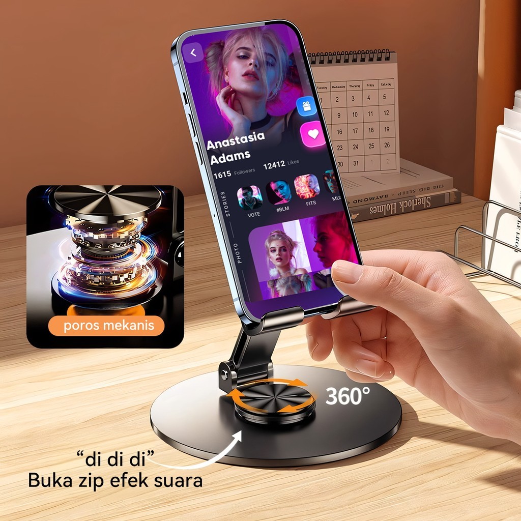 Jqvitek Holder Metal Foldable HP 360° Rotate Phone Stand Holder Tablet Multifungsi For Phones and Tablets Metal Foldable