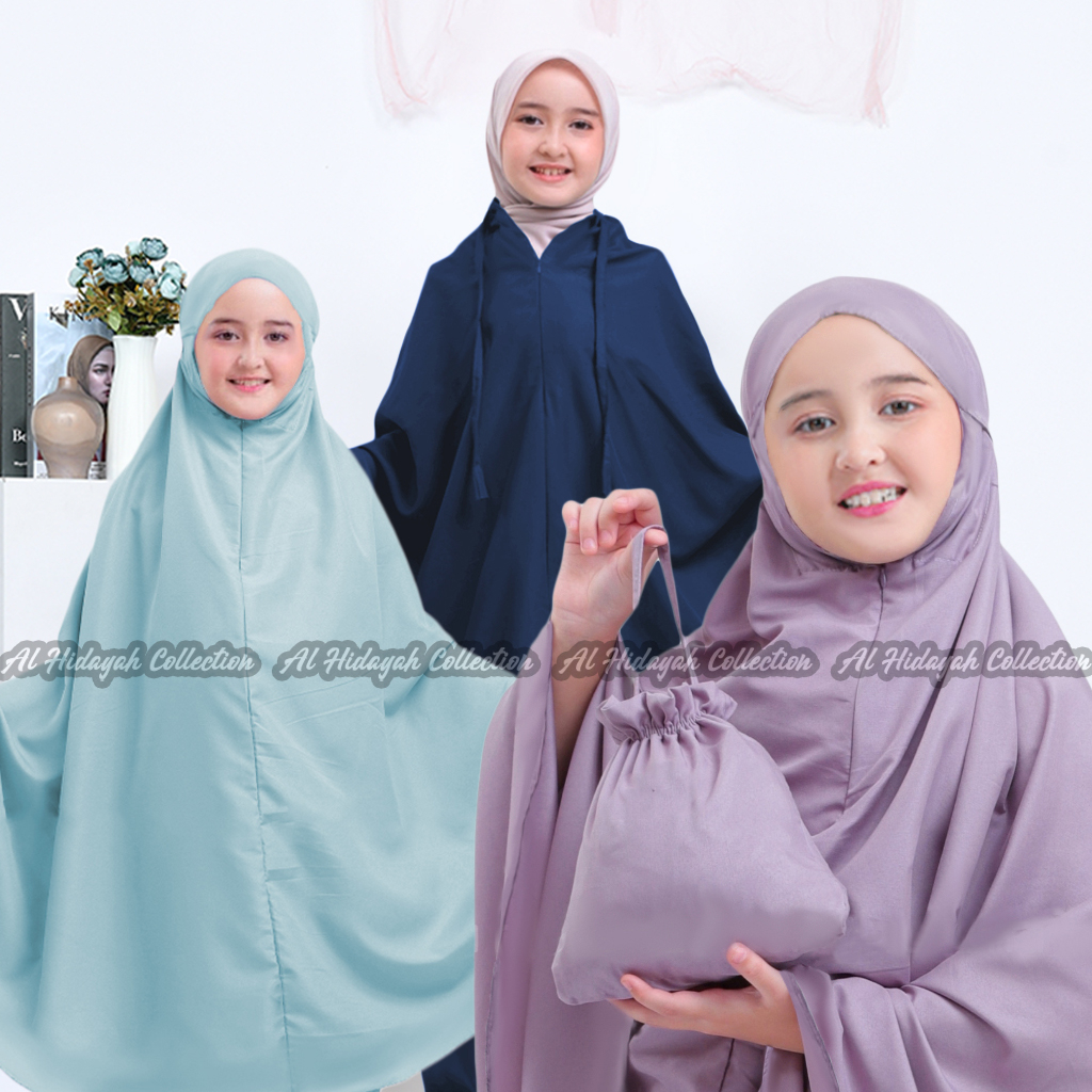 Mukena Anak Traveling 2 in 1 Resleting Dagu Katun Premium Polos SD SMP Remaja 7 8 9 10 11 12 13 14 15 Tahun Alya Series