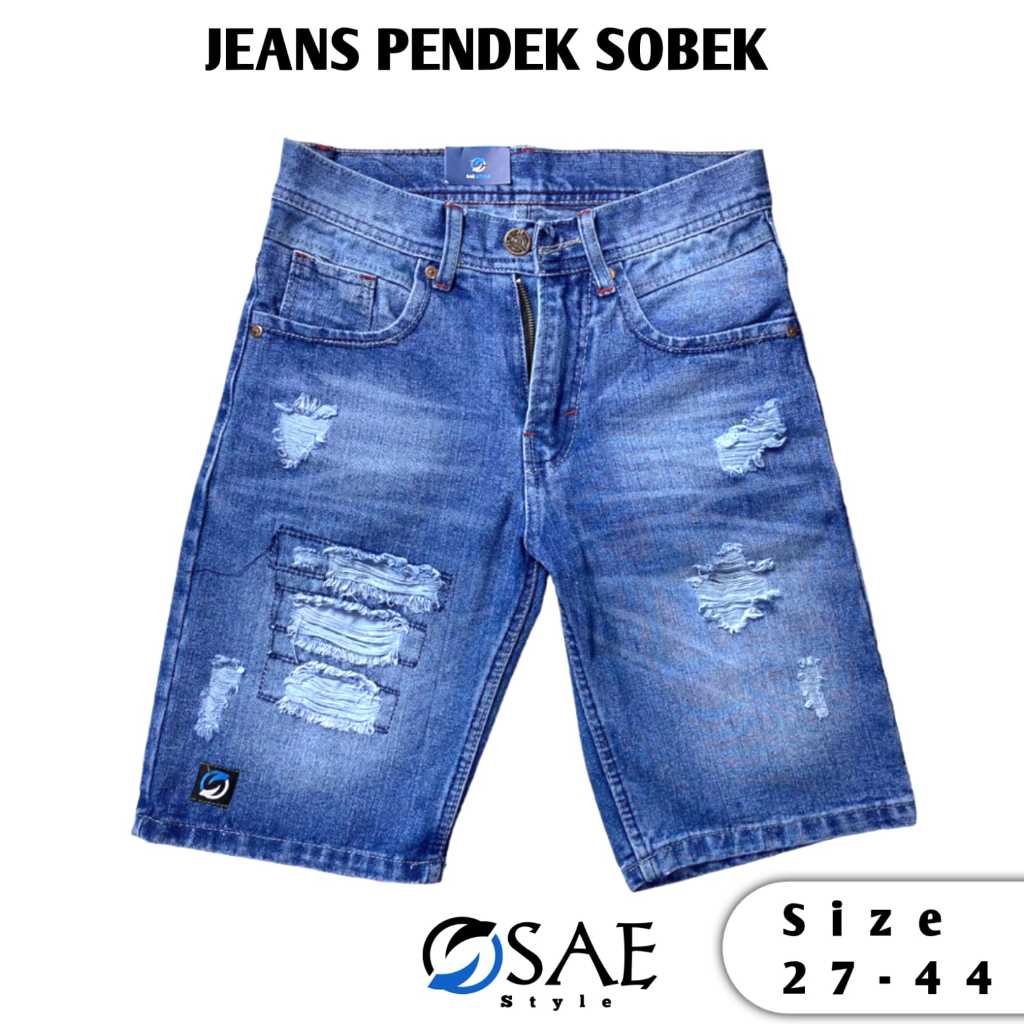 004 SAE G 3 Celana Pendek Jeans Jumbo Riped Sobek Kualitas Premium Keren Distro Kekinian