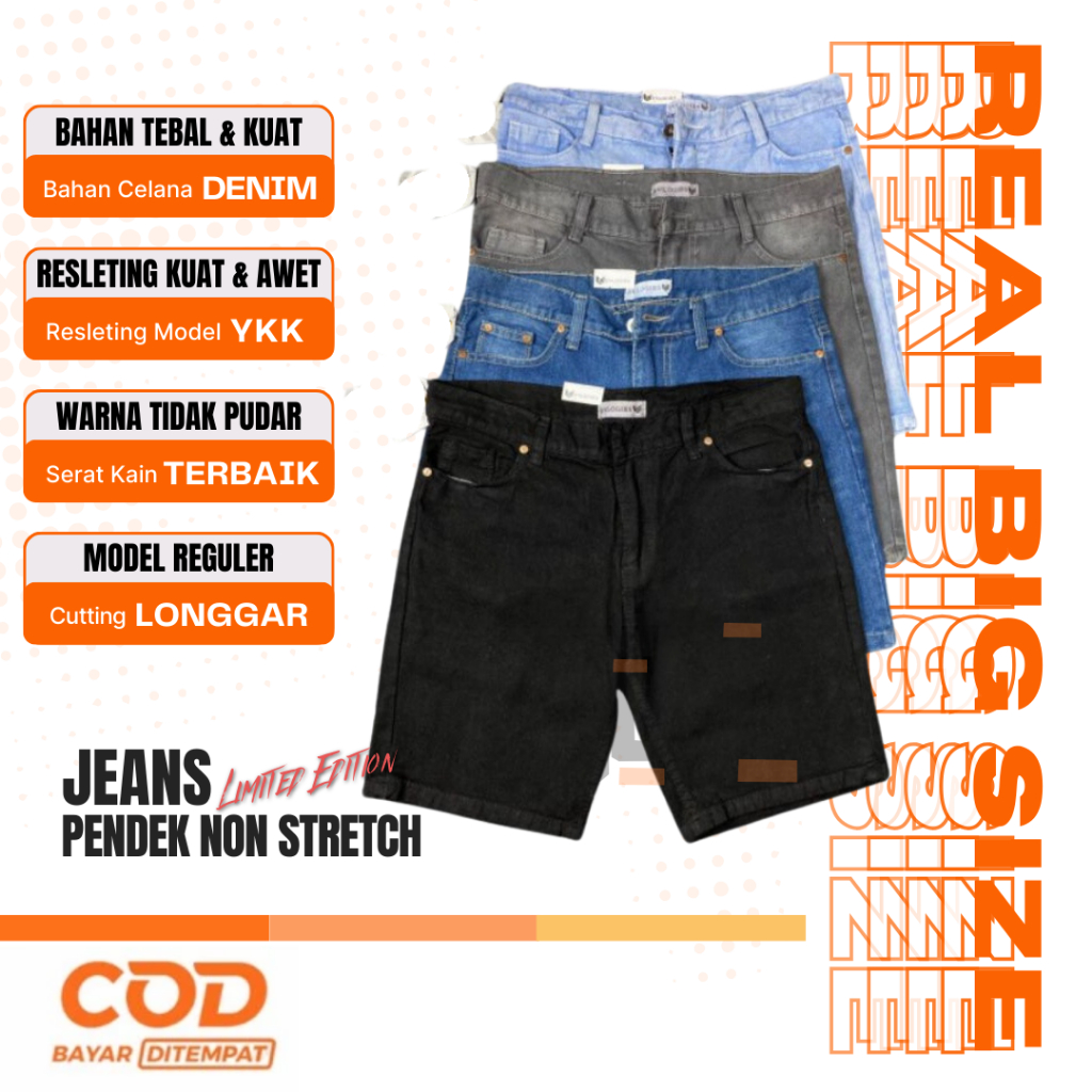 Celana Jeans Pendek Pria Jumbo Big Size 3944 Bahan Non Stretch Premium