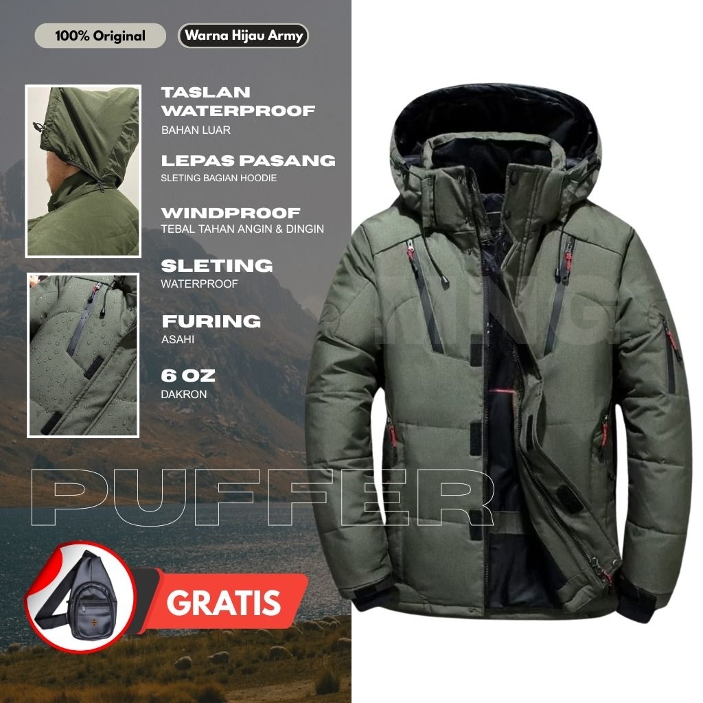 Hitam Puffer, Biru Navy Puffer, Abu Puffer, Hijau Army Puffer, Hitam 2in1, Biru Navy 2in1, Hijau Army 2in1, Hitam Gunung, Biru Navy Gunung, Abu Gunung