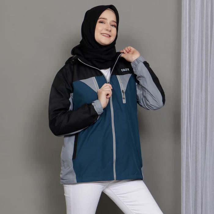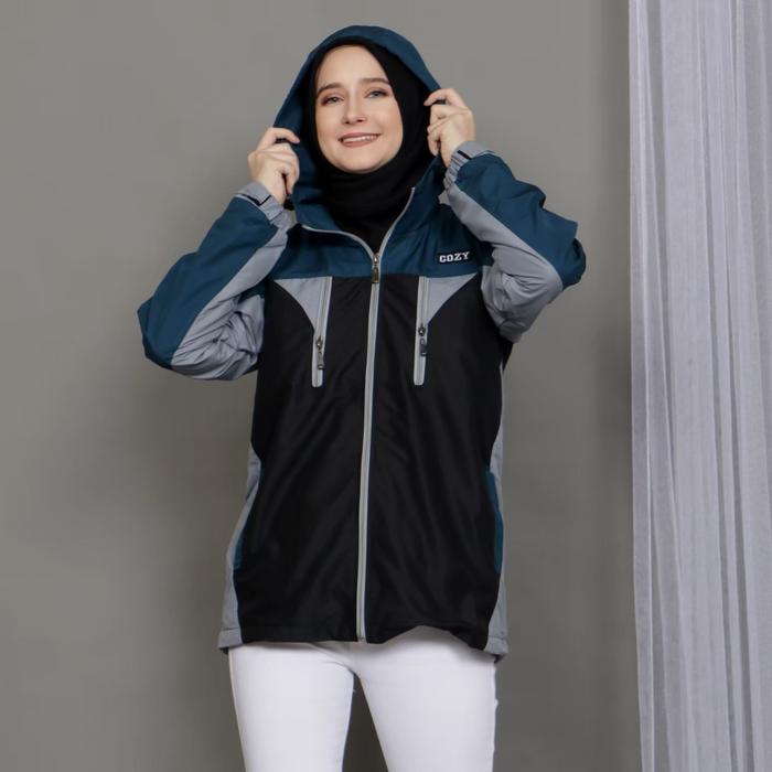 JAKET PARASUT HIKING WATERPROOF UNISEX PRIA & WANITA SIZE M L XL BAHAN PREMIUM FULL PURING TEBAL - RED BLACK , M