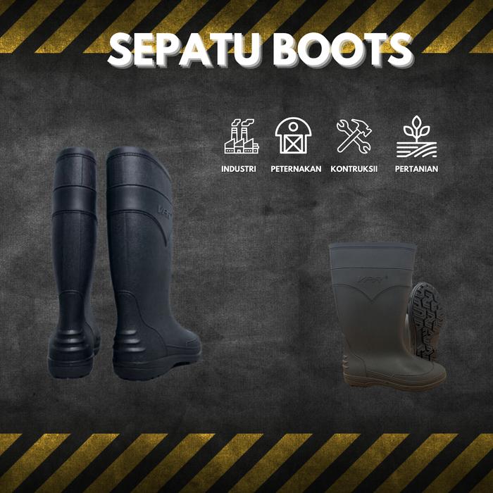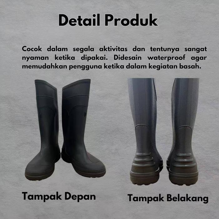 SEPATU BOOT TINGGI KARET LOKAL LENTUR ANTI AIR & SLIP HITAM PERKEBUNAN - PPLUS SHOES PRIA - 39
