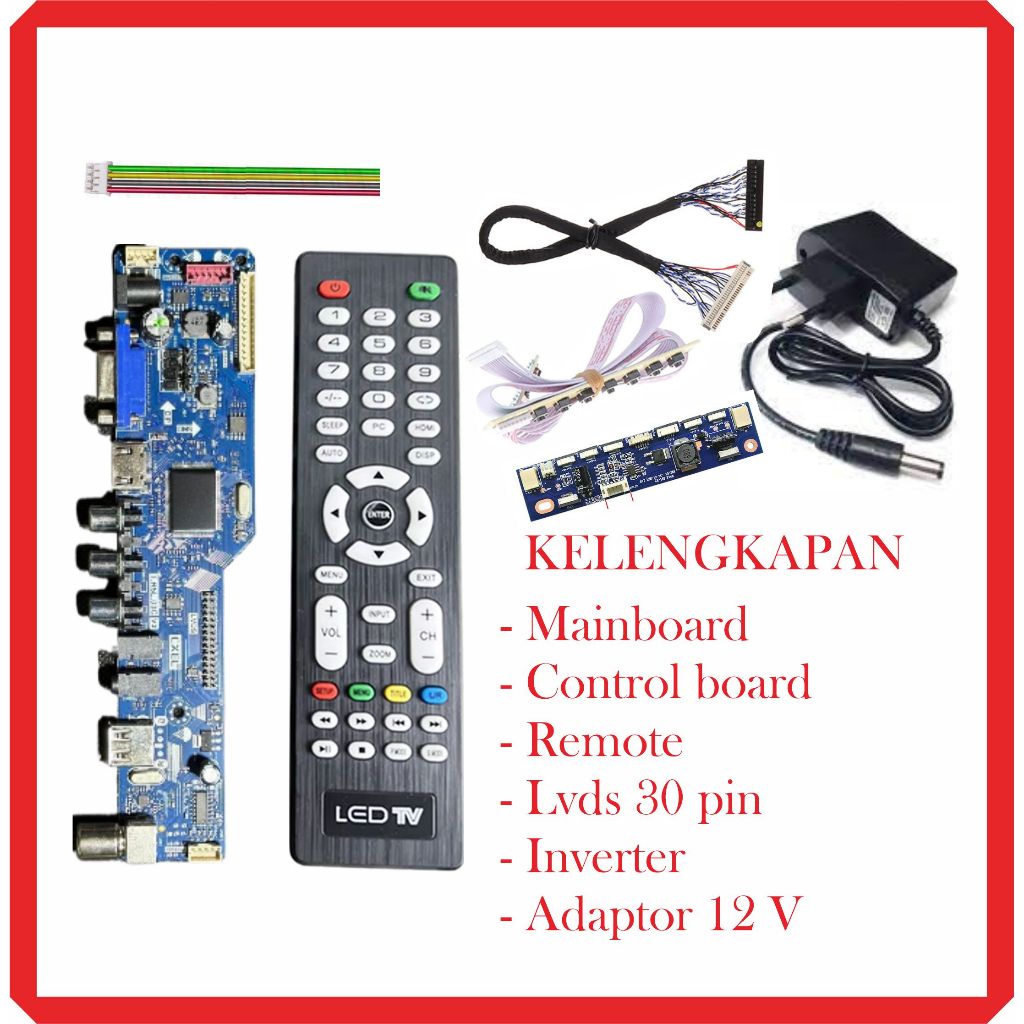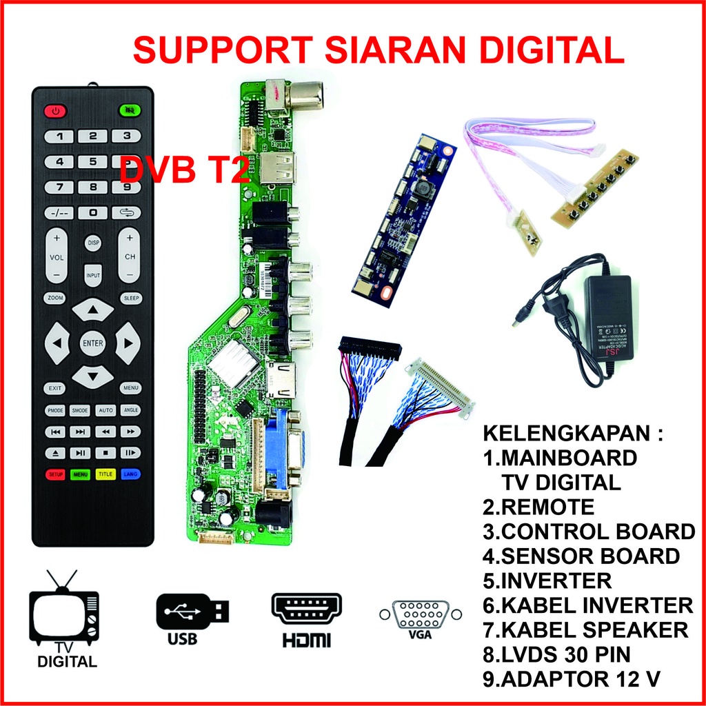 MESIN TV DVB T2 Universal LED LCD TV Board Digital DVB T2 - Paket Mainboard Remote Tombol