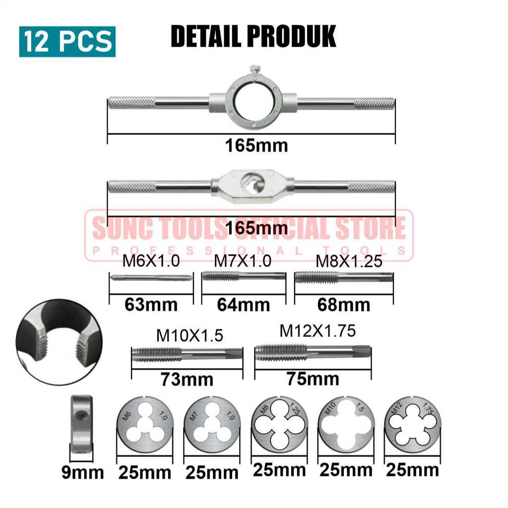 WOIRX TOOL Alat Senai Tap Die Set 12 PCS Alat Snai dan Tap Ulir Mur Baut