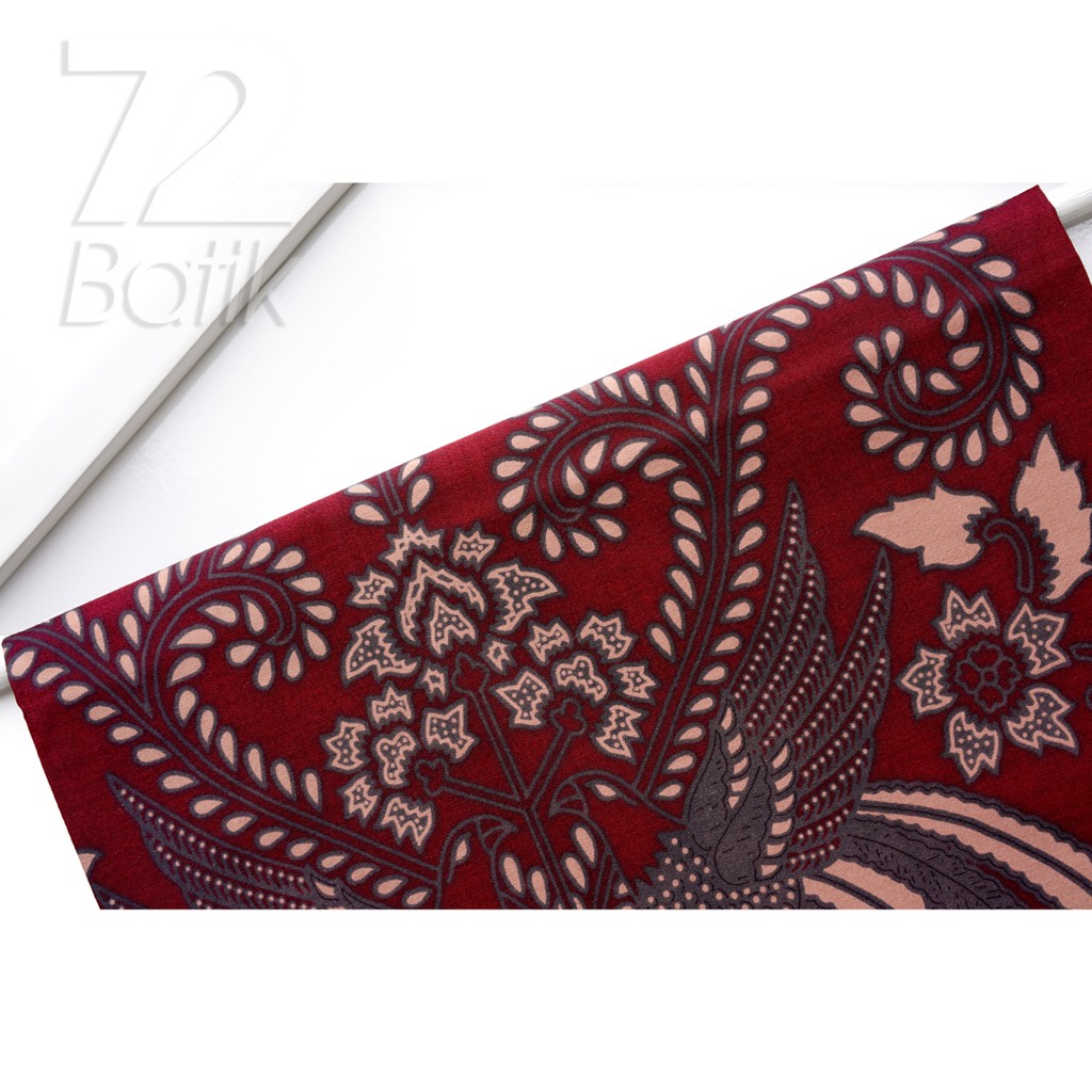 KAIN BATIK PREMIUM Bahan Katun Motif Burung Cokrominoto Warna Burgundy Ungu Burgundy Mocha Mousse 724796 Cap 72
