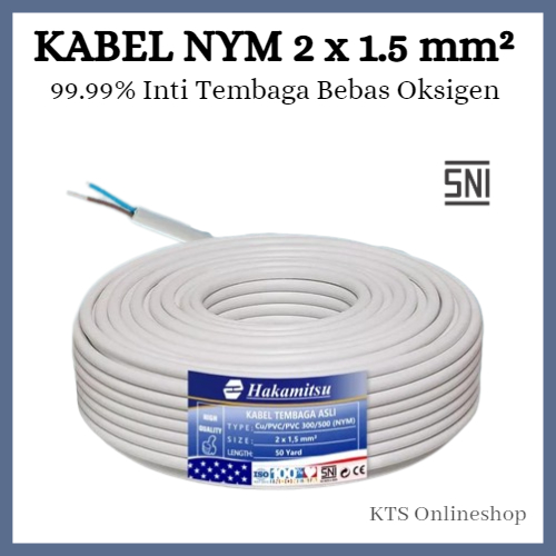 Kabel NYM 2 x 1,5mm 50 Yard Full / Kabel Listrik Tembaga Murni PVC SNI | Merk Hakamitsu