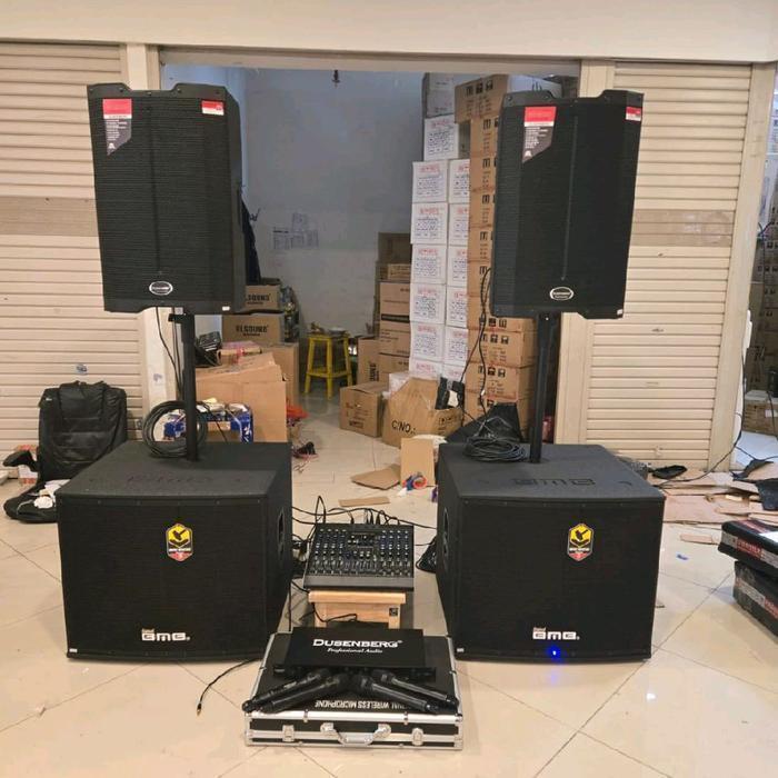 PAKET SOUND SYSTEM PROFESSIONAL,2 BMB SUBWOOFER 18 IN,DUSENBERG 15 IN BASS BLUETOOTH SMART SPEAKER TV WIRELESS SPEKER