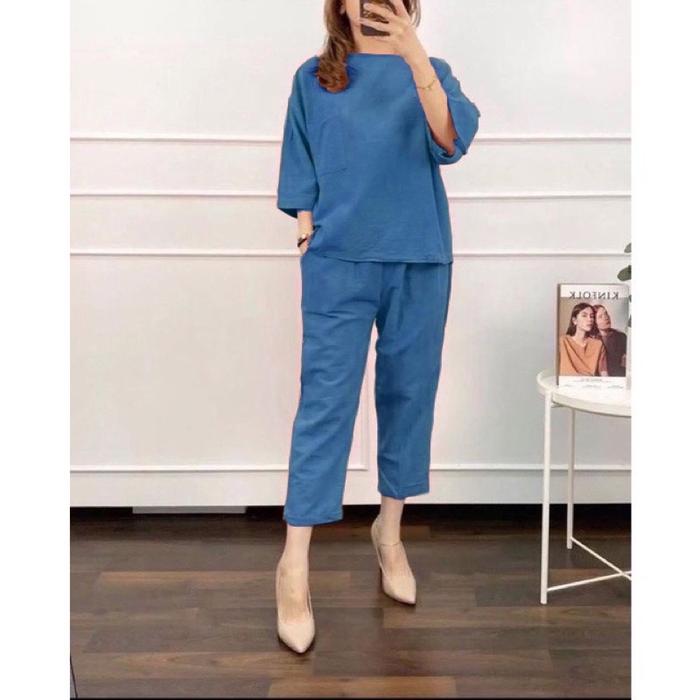 NILTA SET TOP+PANTS SETELAN ONE SET WANITA RAYON - COZIE AVOCADO