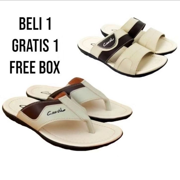 PROMO BUY 1 GET 1 Sandal Pria Kulit Karet | Kasual & Formal | Nyaman Empuk | FREE BOX | Viral