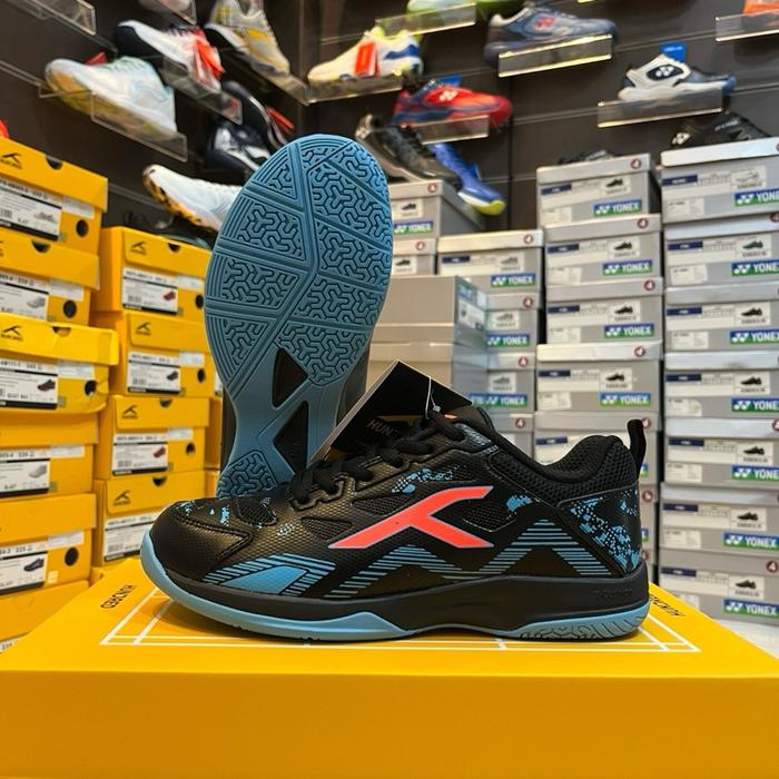SEPATU BADMINTON HUNDRED RAZOR ORIGINAL FREE KAOS KAKI+ GRIP - WHITE BLACK ORANGE, 41