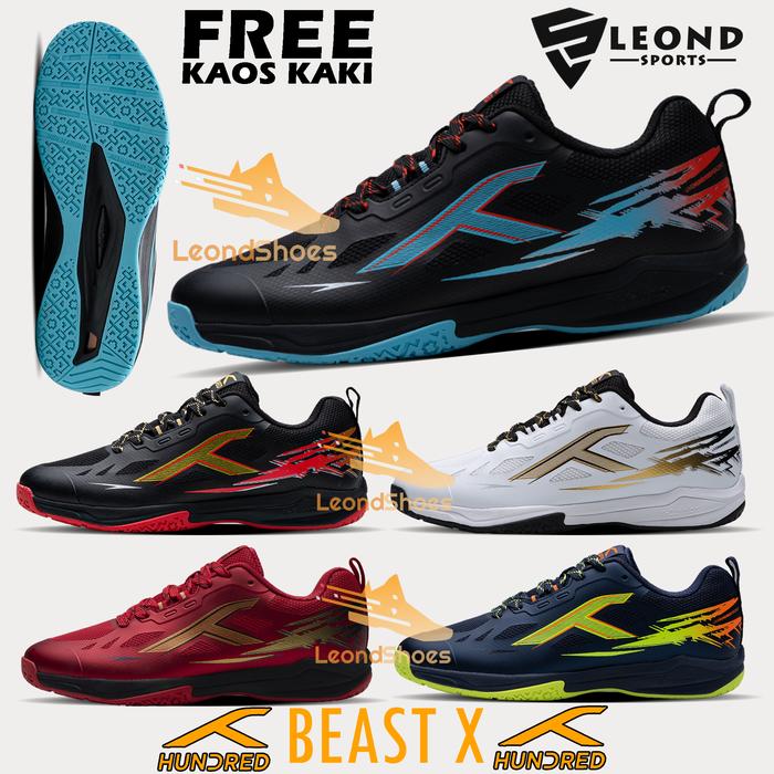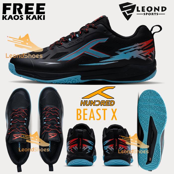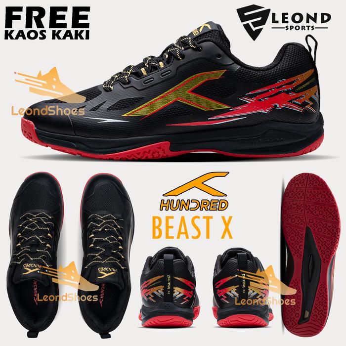 SEPATU BADMINTON HUNDRED BEAST X ORIGINAL SEPATU BULU TANGKIS HUNDRED BEAST TERBARU - BLACK RED g0ldd, 42