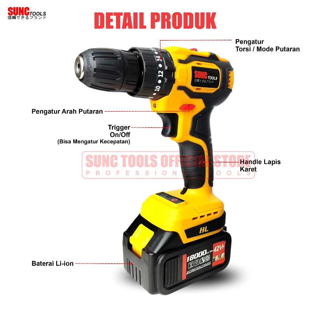 SUNC TOOLS Mesin Bor Baterai Cordless Drill 42VF + Mesin Gerinda Angle Grinder