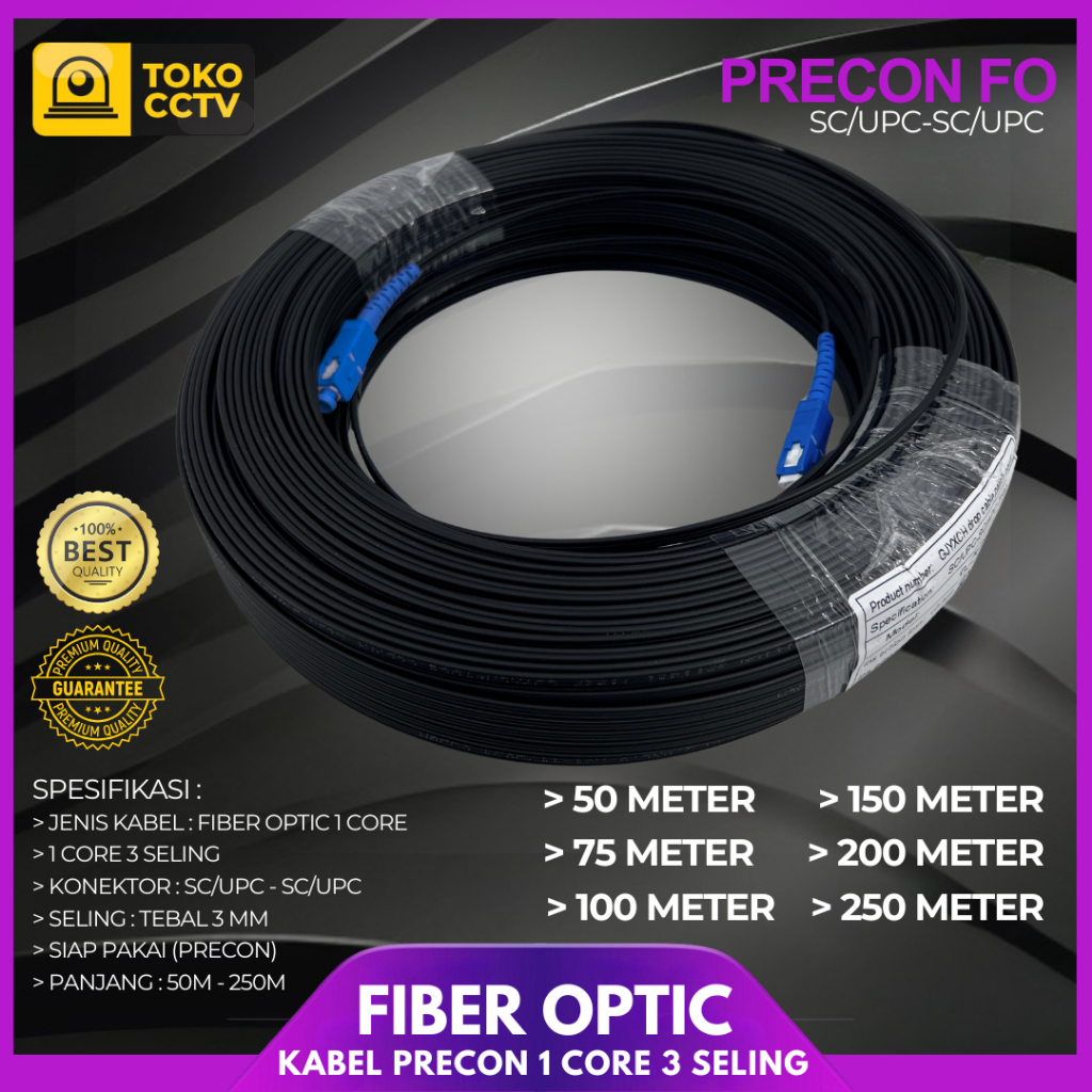 Kabel Precon 50M-300M SC/UPC-SC/UPC FO Fiber Optic 1 Core 3 Seling Outdoor Single Mode