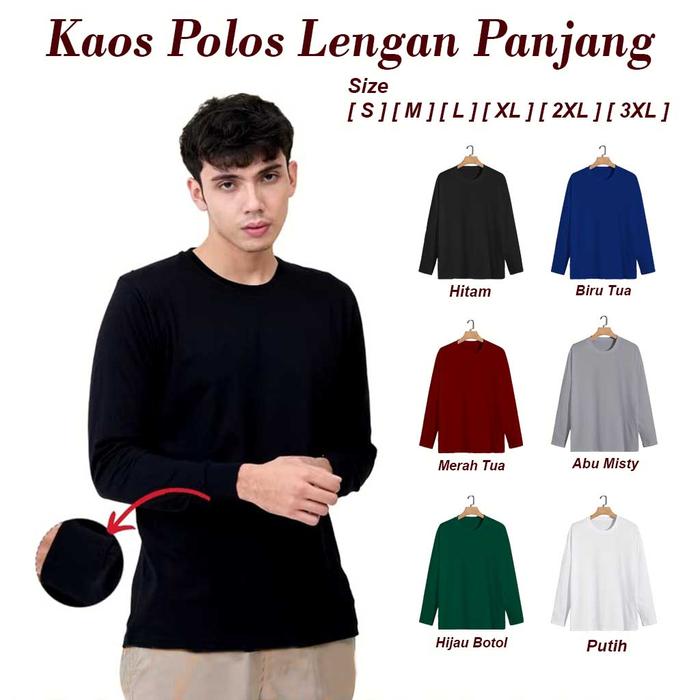 KAOS LOS LENGAN PANJANG T-SHIRT PRIA HARGA TERMURAH BAJU OBLONG KERAH BULAT - HITAM, M