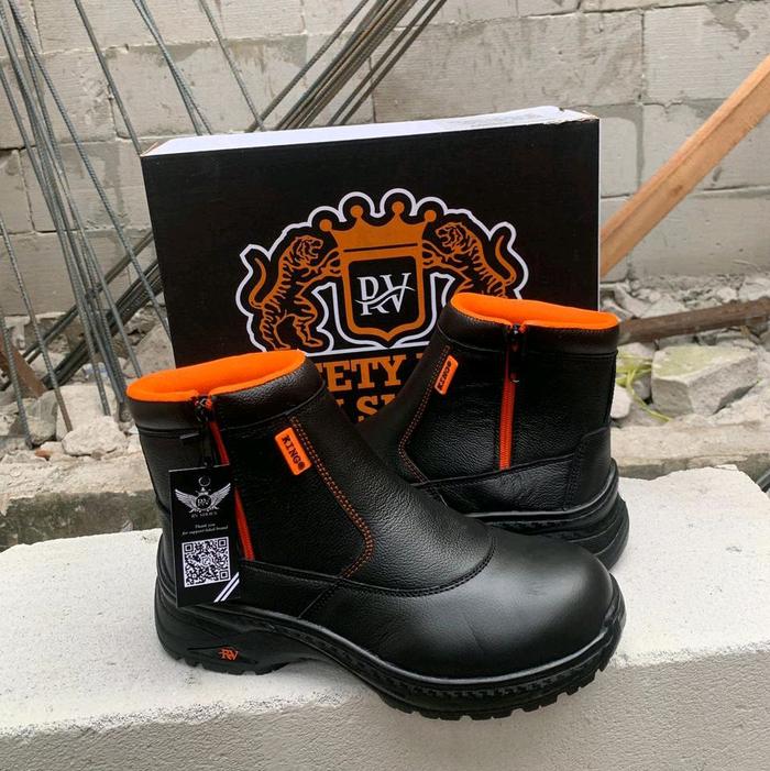 SEPATU SAFETY KING RV KWD 206 X BY HONEYWELL BOOTS SHOES PRIA KARET SYNTHETICS BROWN BLACK WATERPROOF WORK & SAFETY FOOTWEAR KERJA BESI - HITAM, 38