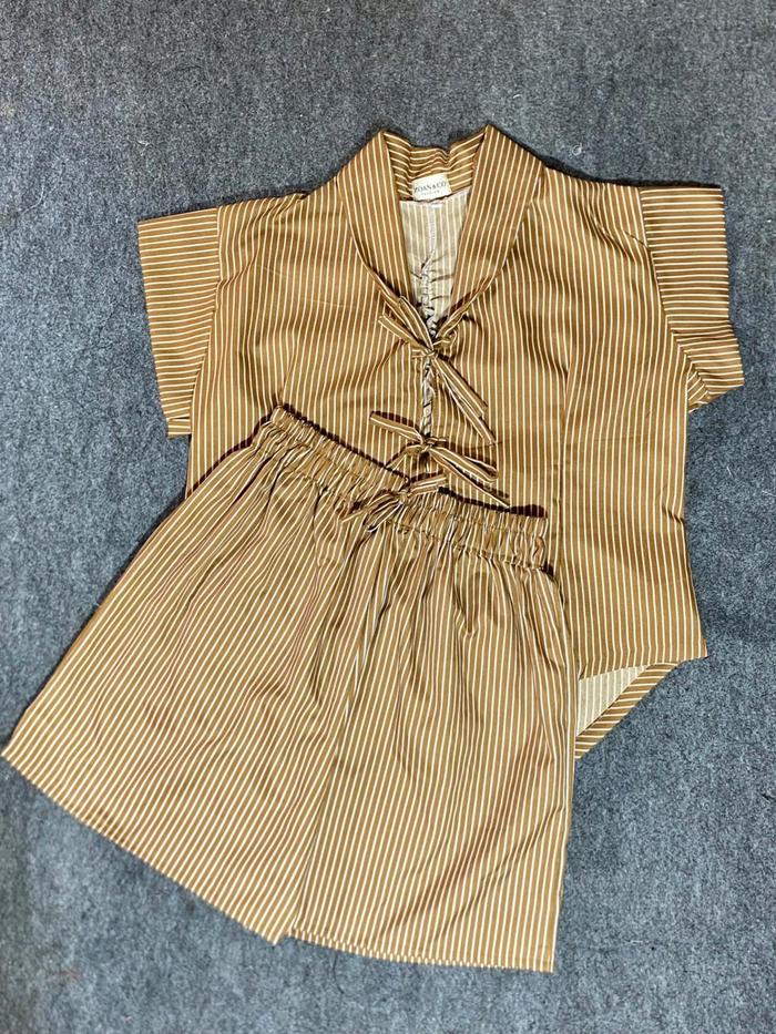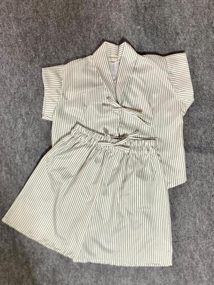 ONE SET KEMEJA VEST CROP STRIPE ROMPI T0P CEWEK CASUAL DAN CELANA HARUKA PANTS - ONE SET PINK, XXL