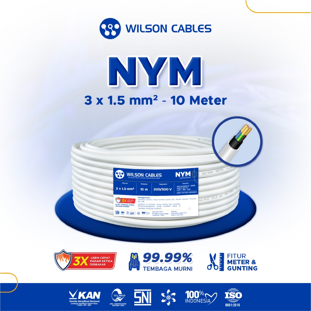 WILSON CABLES - NYM 3x1.5 mm² (10 Meter) - Kabel Listrik Tembaga Kawat