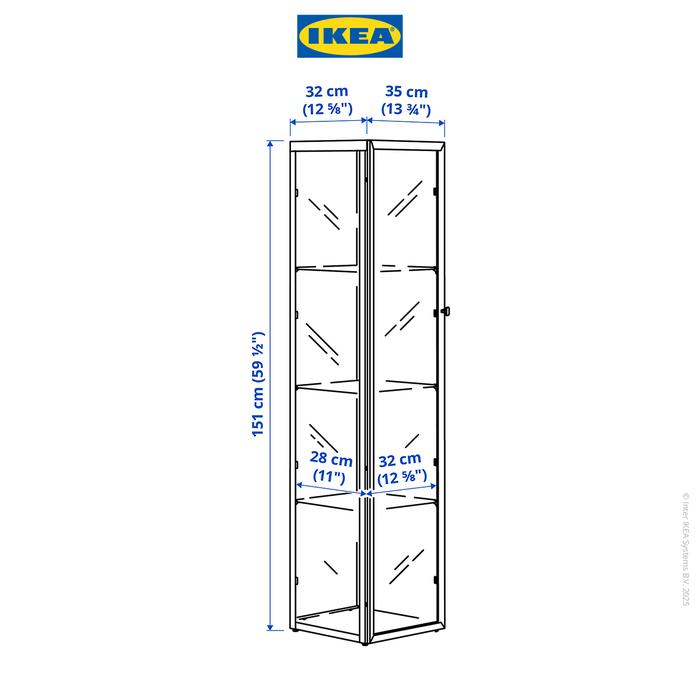 IKEA BLALIDEN KABINET PAJANGAN DENGAN PINTU KACA HITAM 35X32X151 CM FURNITURE