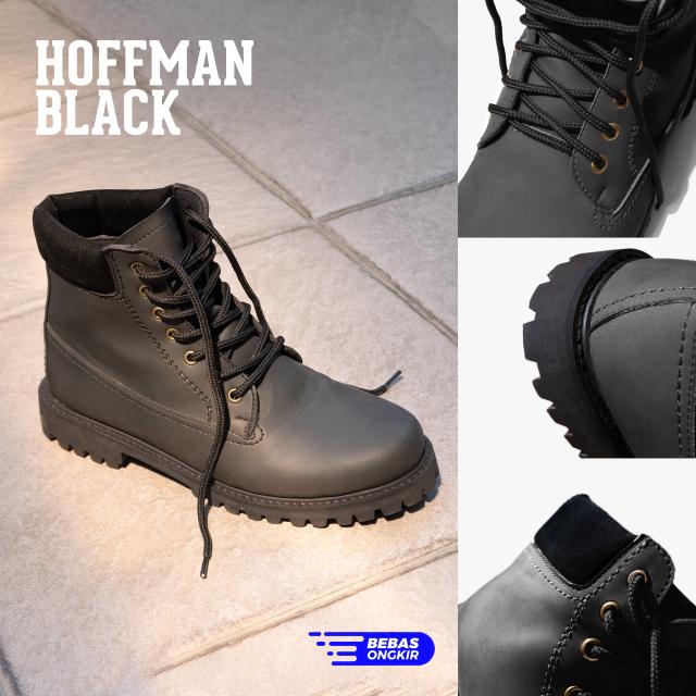 SEPATU BOOTS CASUAL PRIA TRAGEN FOOTWEAR HOFFMAN BLACK BOOTS SHOES HITAM SHOE KERJA - BLACK, 39