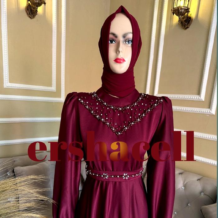 GAUN HALIMAH MAXMARA PREMIUM DENGAN PAYET MUTIARA - MAROON, BURGUNGY, NAVY, HITAM, DENIM TUA, DENIM MUDA, LAVENDER TUA - S, HITAM