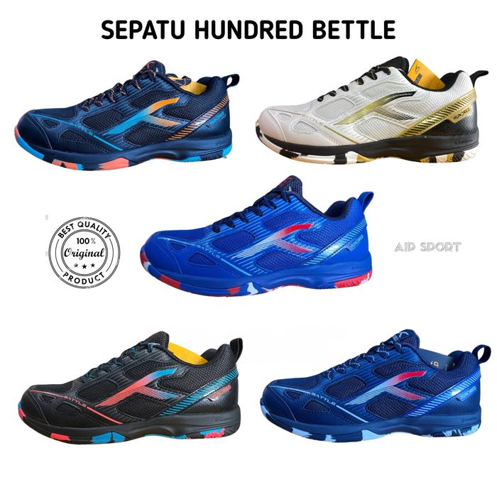 SEPATU BADMINTON HUNDRED BATTLE ORIGINAL 100 PERSEN - BLACK/ORANGE/BLUE, 36