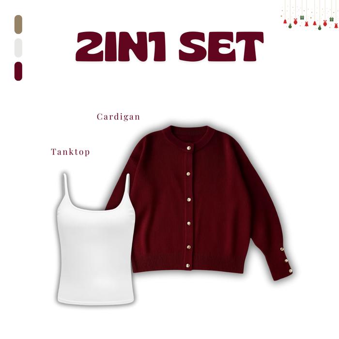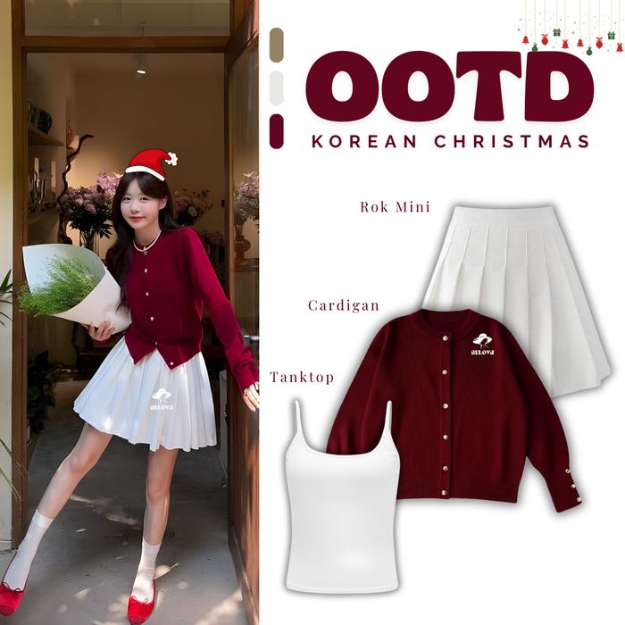 OOTD CRISTMAS KOREAN 3IN1 CARDIGAN RAJUT ROK MINI TANKTOP ONE SET REMAJA KEKINIAN SO2A61 - FULL SET