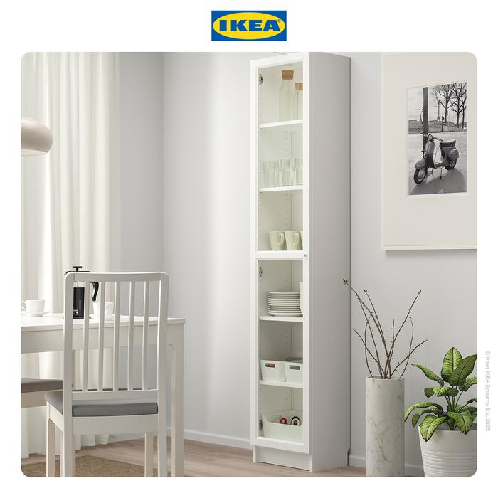 IKEA BILLY/OXBERG RAK BUKU DENGAN PINTU KACA SERBAGUNA PUTIH 40X30X202CM