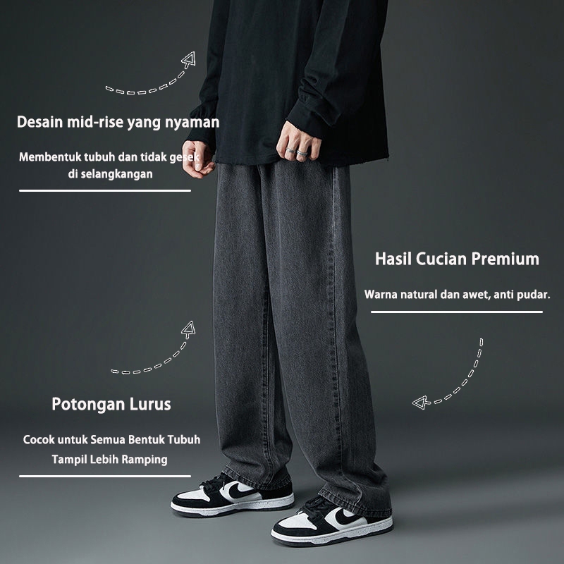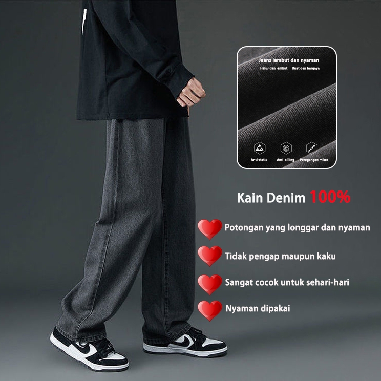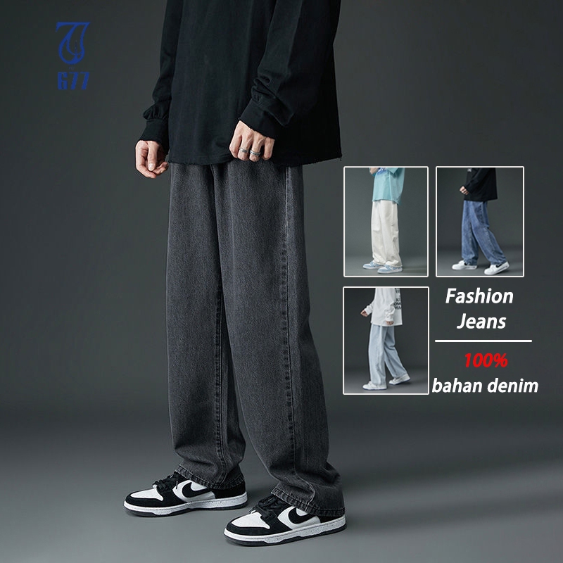 677YU Celana Jeans Pria Korean Style Baggy Pants Boyfriend Jeans Celana Panjang Pria Loose Pants