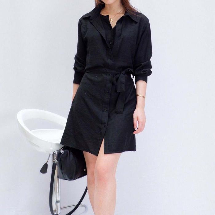 LUNA 3IN1 DRESS - KEMEJA TUNIK WANITA - WOMEN OUTER SHIRT BLAZER - BUSUI FRIENDLY SEMI FORMAL 6037 BAJU CASUAL LINEN PANJANG SANTAI MELAR - HITAM