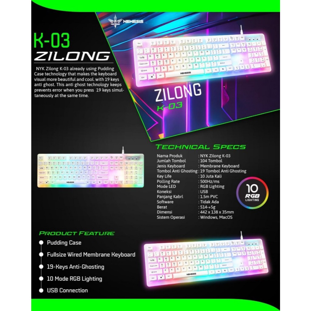 Keyboard Membrane Pudding Case Full RGB NYK Nemesis ZILONG K-03