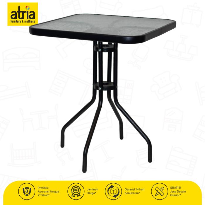 MEJA ATRIA DE GRASS METAL BAJA WDER COATING TEMPERED GLASS BLACK - ROUND